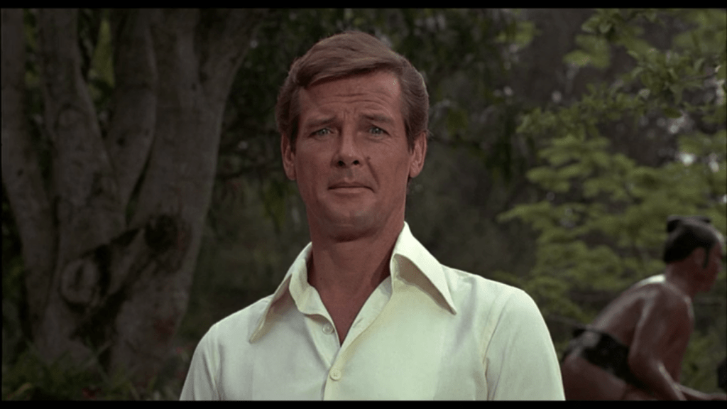 Out of Roger’s Bonds, he is rarely as tough as he is here in The Man with the Golden Gun, He even uncomfortably smacks Maud Adams around.  Part of the reason is that they were still writing scripts with Sean Connery in mind, as Sean’s Bond could get away with moves like these, but Roger’s Bond couldn’t and shouldn’t. By the way, Sean was definitely and absolutely never coming back to play James Bond.  (Well, if “never coming back” meant “until 1983” and the producers couldn’t wait that long.)