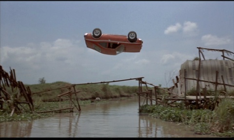 But that all being said, there is one major unbelievable sin that the movie commits that even 40+ years later is wholeheartedly unforgivable.  During the course of an otherwise unremarkable car chase, Bond takes his AMC Hornet and drives it across a bridge that is in disrepair. (Yes, his AMC Hornet, I said. Apparently Aston Martins and even Chevys were far too pricey for the budget.) He guns the engine, managing to perform a complete 360 degree barrel roll in the air as he goes from one side of the broken bridge and lands perfectly on the other.  The stunt was extremely dangerous and was pulled off in one beautiful take.  It is a signature stunt of the entire series and still is amazing to this very minute as I just watched it again.