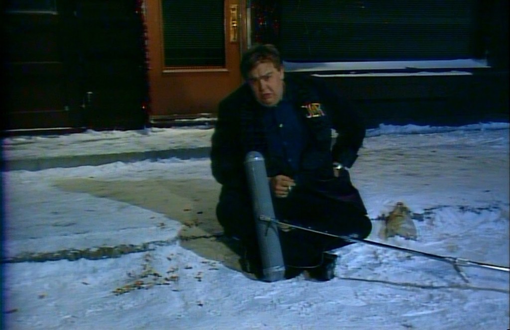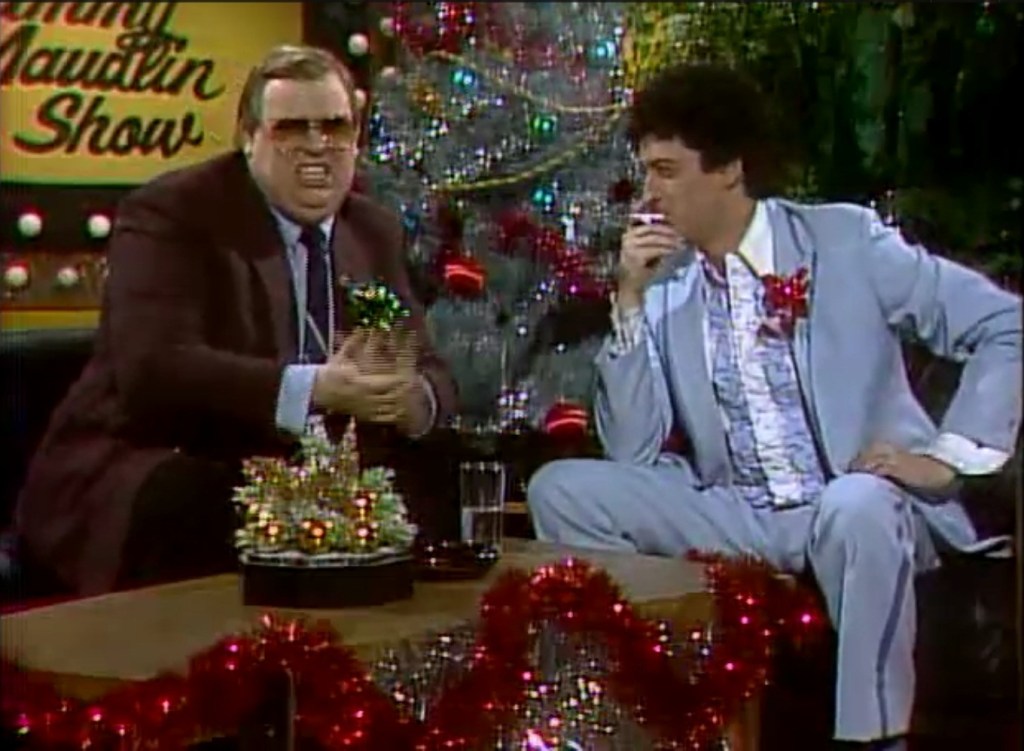 - Let’s talk about John Candy. Yeah, I saved the best of the best for last. Candy was a special sort. Beloved as a person and performer by so many that when he passed away, we all felt the loss. For me, it wasn’t like so many other celebrity deaths that result in a quick pause to acknowledge their passing and maybe an obligatory review of whatever media they put out. Candy was family, everyone’s beloved uncle. His death stung, it just sucked. Here in this single episode of SCTV he has quite a few moments to shine. Above all else, quite literally shooting a crane shot, is Candy’s Johnny LaRue, told by Guy Caballero to do a live holiday edition of his show Street Beef on Christmas Eve on the most frozen night that Melonville/Edmonton had to offer. No matter how cold it is, Candy goes for it, even getting down on the snowy street in a pile of cigarette butts to drunkenly make snow angels at one point. By the way, throughout that whole section, Candy is acting his ass off while freezing his ass off. Despite the cold, despite the discomfort, despite everything, Candy found a sweet spot and showed off to us all. I just rewatched it recently and it never fails to affect me. John Candy, thank you. You are missed. (Now can Second City start offering JLaR smoking jackets to purchase? I’d snag one in a heartbeat!)