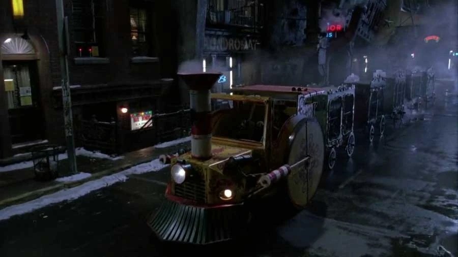 The Gotham in Batman Returns just looks like it was filmed in an enclosed set.  The streets seem more cramped because you’re trying to jam Gotham into two city blocks.  Thankfully, the miniatures cover over some sins, especially the wonderful flying shots of the closed zoo that ultimately lead to the Penguin’s lair.  In Batman, I could believe that the Batmobile could most definitely shoot out a hook to make a wide turn into a tight corner.  In Batman Returns, I don’t think the Batmobile would have enough room to parallel park.