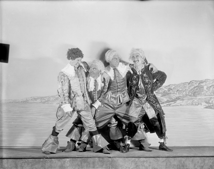 Seemingly, hundreds of musical numbers and characters from the stage version were thrown aside for the film version. That being said, and said rather well I think, it appears that most, if not all, of the original third act has been lopped off for the movie. This is a bit regrettable due to the loss of the “We’re Four of the Three Musketeers” song which was performed by all four Marxes on the stage but was never filmed or otherwise recorded by them. However, I don’t believe a more than two-hour Marx film comedy would flow nearly as well, so many of these edits are understandable.